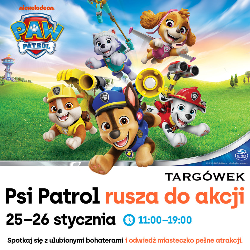 Już 25 i 26 stycznia najmłodsi odwiedzający centrum handlowe Targówek będą mogli spotkać swoich ulubionych bohaterów Psiego Patrolu i przeżyć dzień pełen przygód! Na dzieci czekać będzie interaktywne miasteczko pełne atrakcji, gier, zabaw oraz okazji do zdobycia nowych umiejętności w towarzystwie dzielnej ekipy szczeniaków. W weekend 25 i 26 stycznia, w godzinach 11:00 – 19:00, centrum handlowe Targówek zamieni się w prawdziwe miasteczko Psiego Patrolu! Wszystkie dzieci zapraszamy na wyjątkowe spotkanie z ulubionymi bohaterami serialu, pełne zabawy, nauki i niespodzianek. To doskonała okazja, by spędzić rodzinny czas w niezwykłej atmosferze! | ![]() |